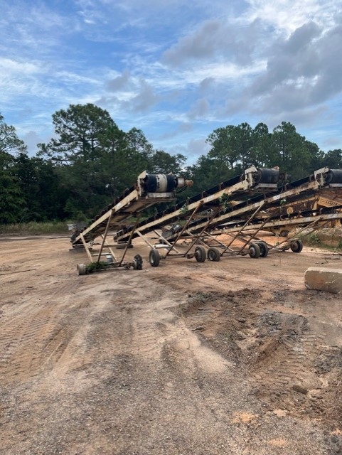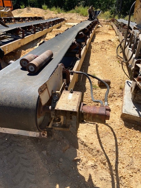 Stacking Conveyor, electric drive, 2 ply belt, winged tail pulley, lagged head pulley, power radial movement, power raise and lower, disassembled on our, Alabama Yard, $19,500.00 ...