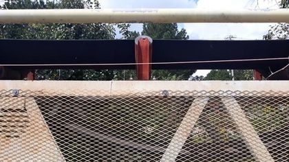 Used Truss & Channel Frame Conveyor complete with troughing and return idlers, head and tail pulley, Speed reducer, drive Motor, POR...